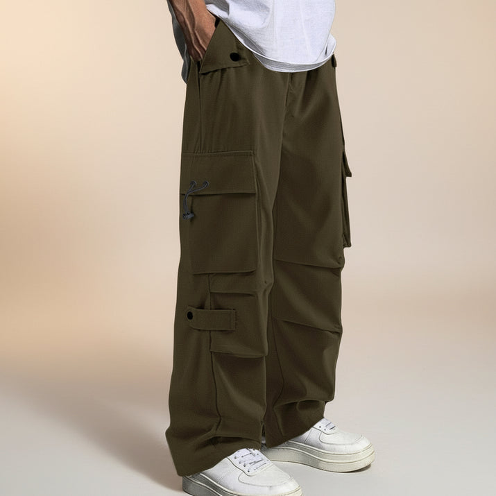 These trousers come in a relaxed fit suitable for adult males. While specific size options aren’t listed, the drawstring closure allows for a customizable fit, enhancing comfort for various body types.